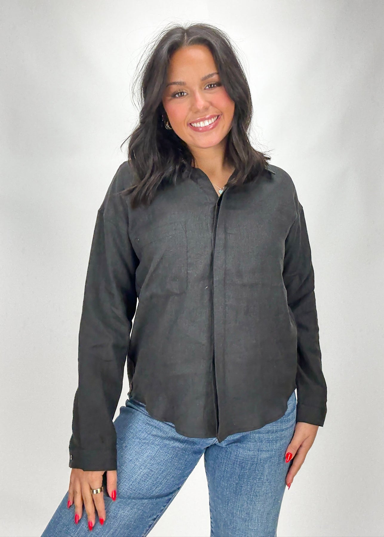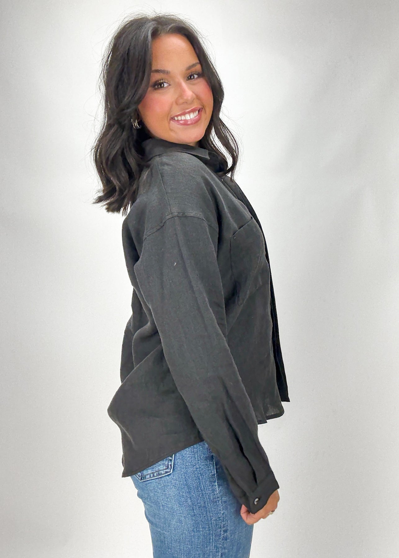A timeless and elegant black linen button down that's a closet must have. Perfect for styling with denim or a fun pant, this linen top is the epitome of classic fashion.