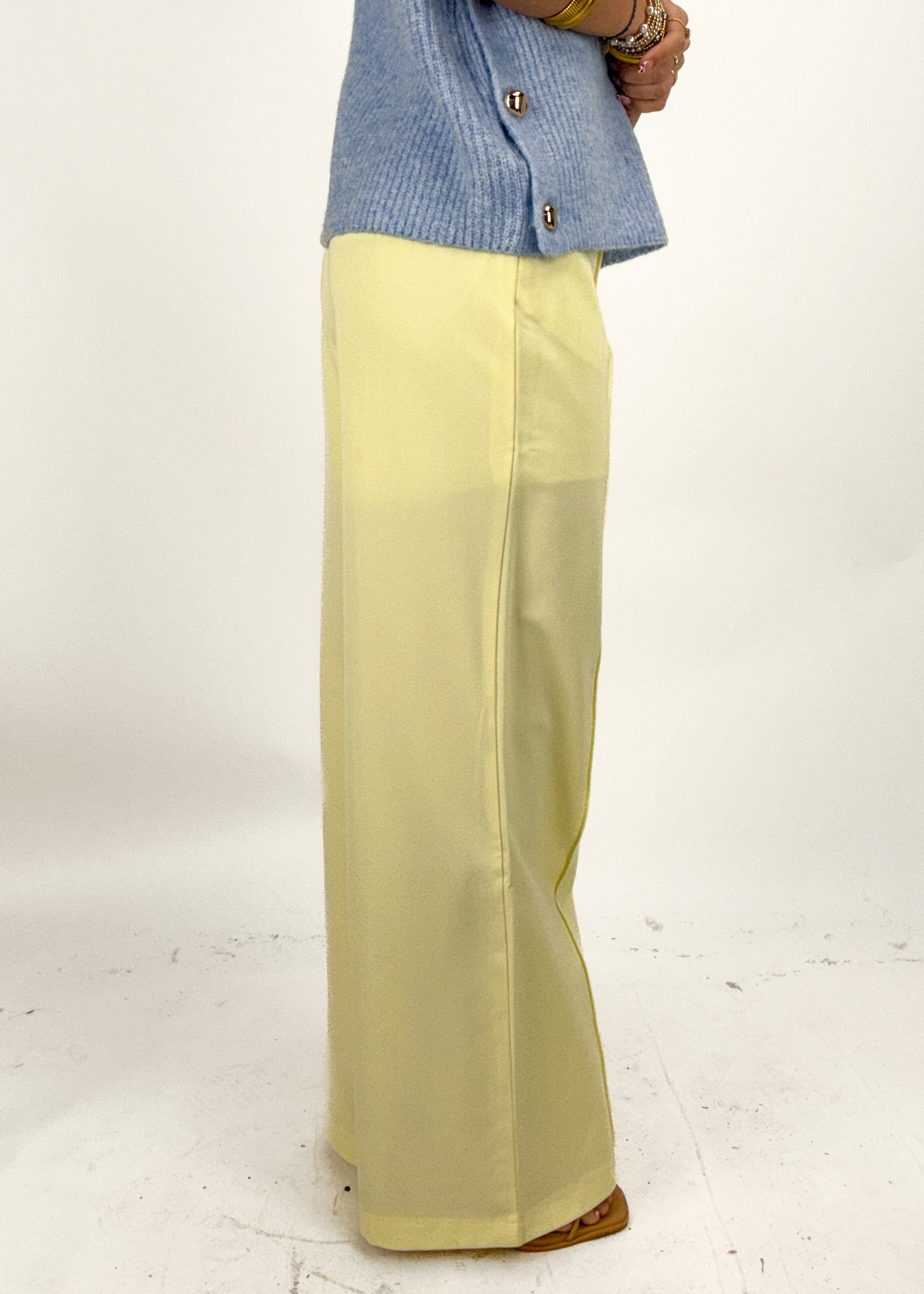 In a bright butter yellow, these wide leg pants are so sleek and great for dressing up your look. Whether you're headed to the office, brunch, or date night, these fun bottoms are a must have!