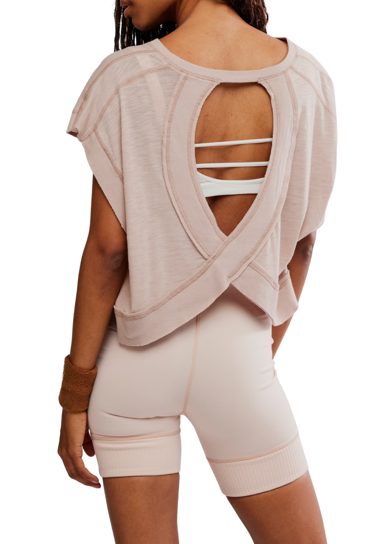 Make your next move in this light and airy layering tee featured in a slouchy design with a wrapped cutout back that’ll keep you cool through all your workouts.