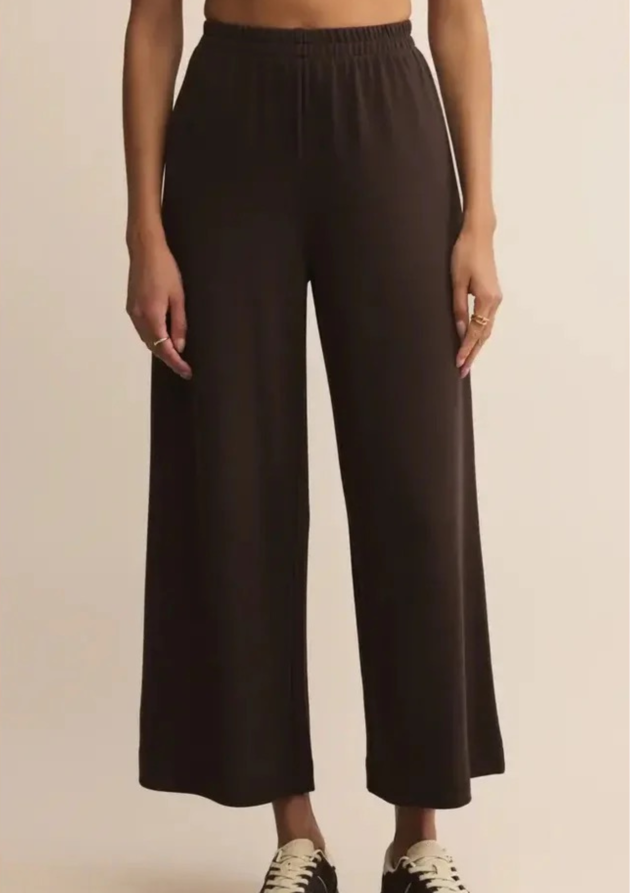 Needing a pair of go-to fall bottoms that are comfy and classy? Look no further! These wide leg pants from Z Supply come in a warm chocolate cherry color and are so fun styled with a graphic tee.