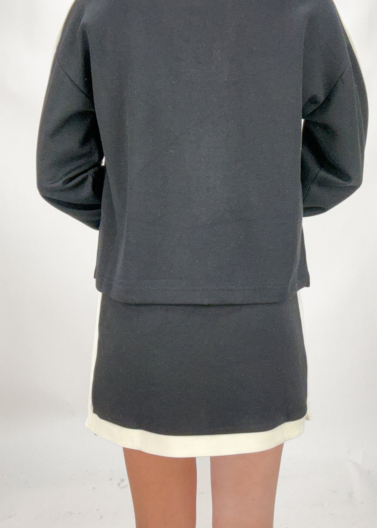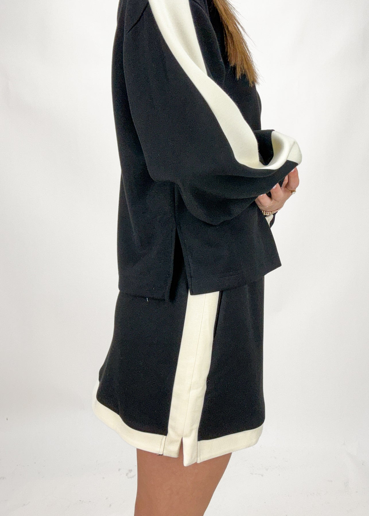 Comfortable and so classic, this black mini skirt has pockets and thick white trim. Pair it with a textured tank top or a graphic tee for a chic spring and summer look.