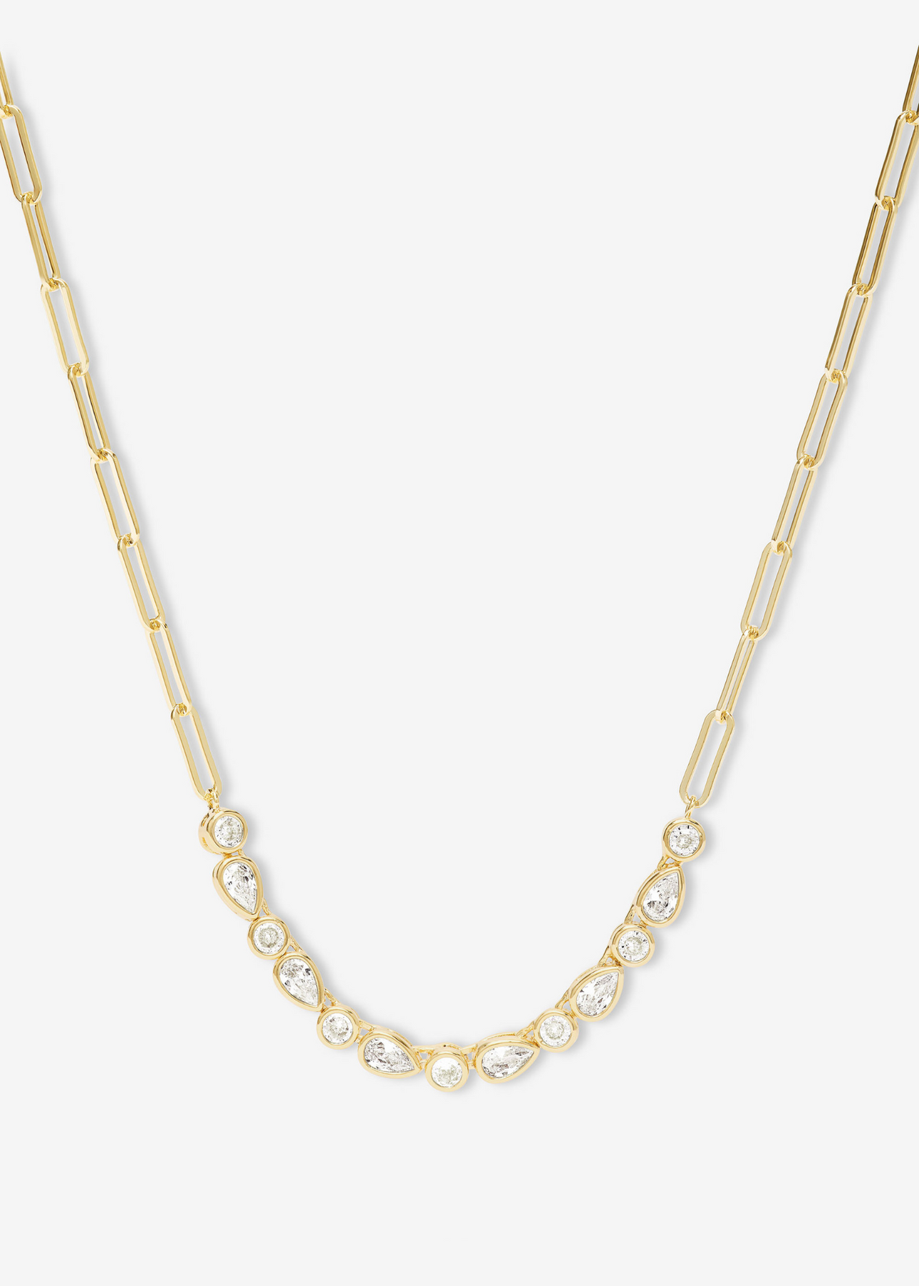 Vacation mode: on. A tennis necklace with a chain twist is a must have in any jewelry box. The Isla Samantha Tennis Necklace is glamour and comfort, perfect for those endless vacation days.