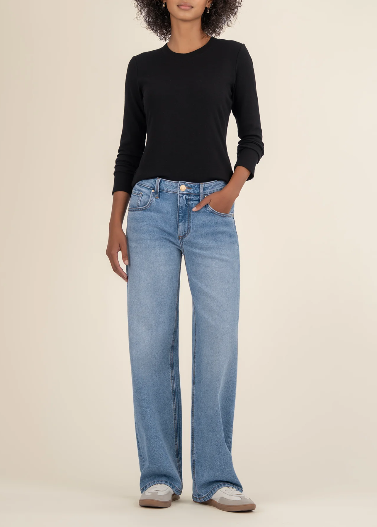 This long sleeve knit top is crafted from soft material for ultimate comfort. Featuring a flattering scoop neck, it’s the perfect everyday piece for layering or wearing solo with your favorite pants or skirts.