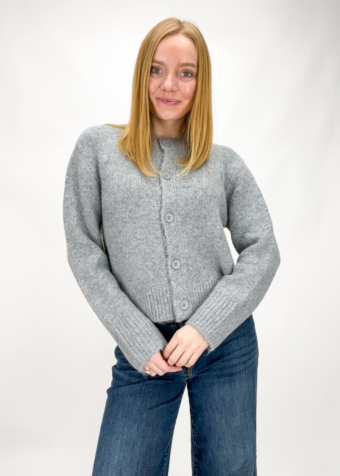 Brushed mohair yarns give this cropped button-front cardigan its soft, cloudlike feel. A modern take on a classic, it’s perfect for layering or wearing as a top with denim.