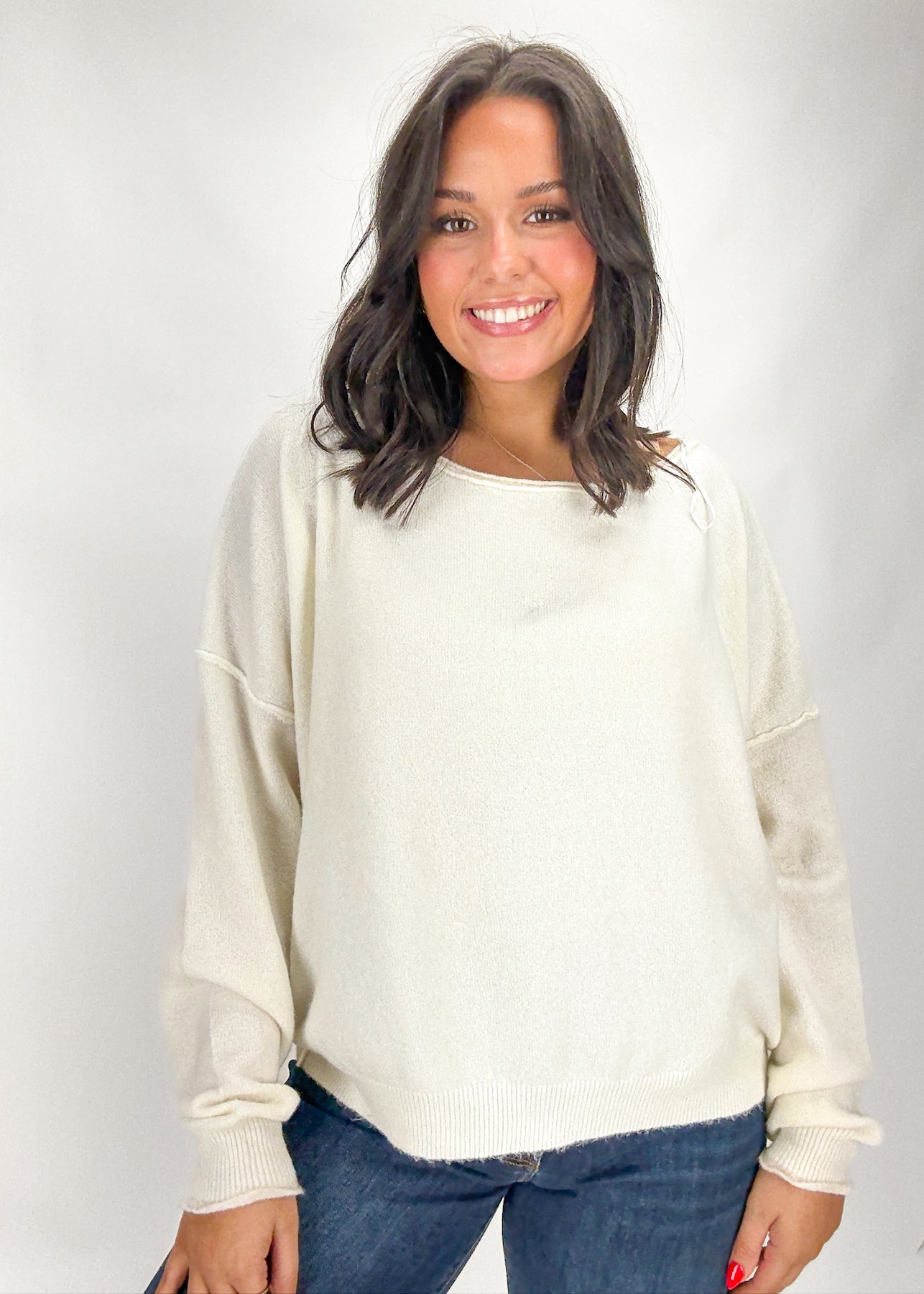 So soft and effortlessly essential, this boat-neck sweater is featured in an airy wool blend with contrasting trim for a subtle touch.