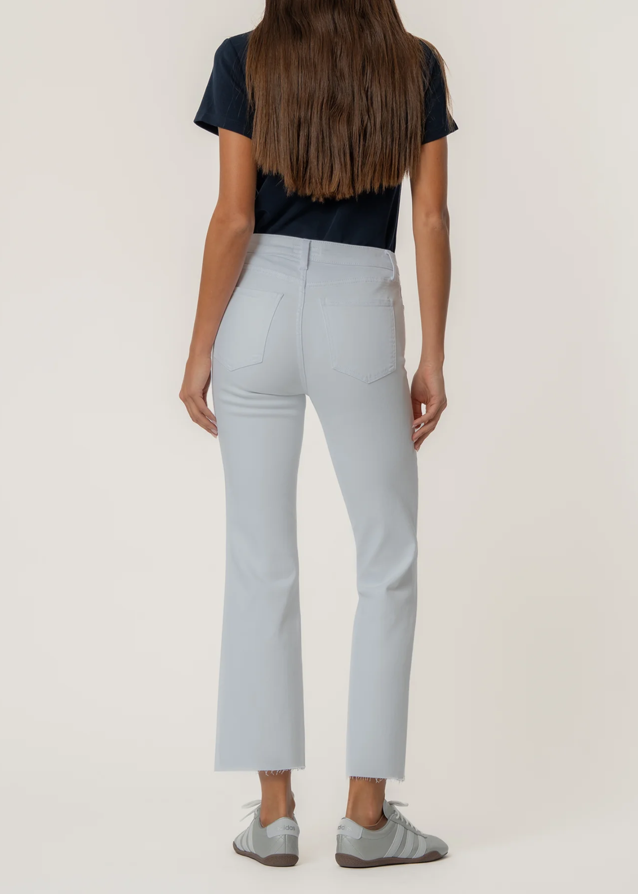 Refresh your wardrobe with these high-rise ankle flare jeans in stunning optic white. Designed with stretchy material, they deliver a perfect balance of comfort and contour. The clean optic white finish and modern ankle flare silhouette make them a must-have for effortlessly polished style.