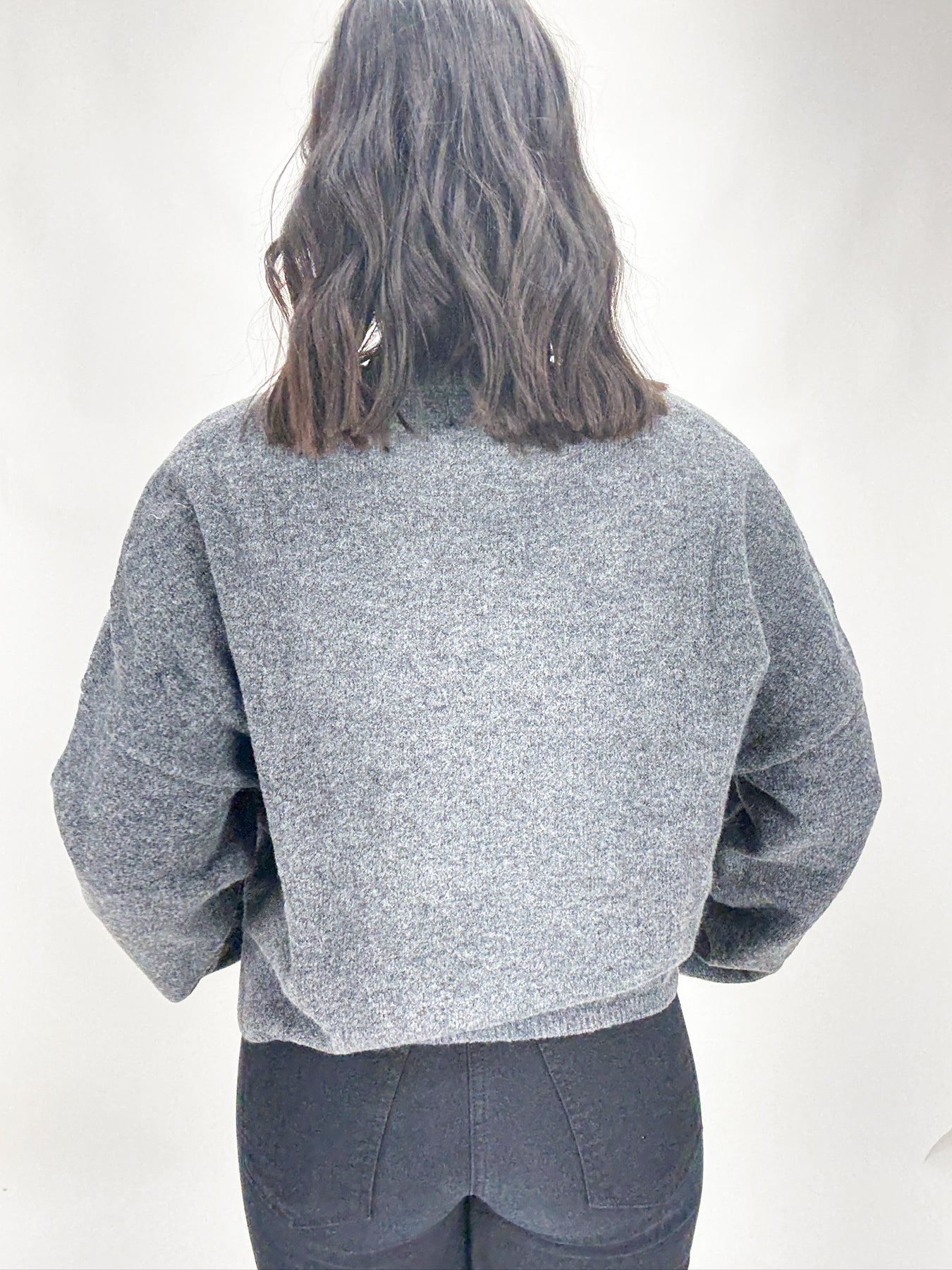 Show some love in this cozy charcoal grey sweater featuring a dog and red bow graphic. This lovely piece is perfect for any holiday event.