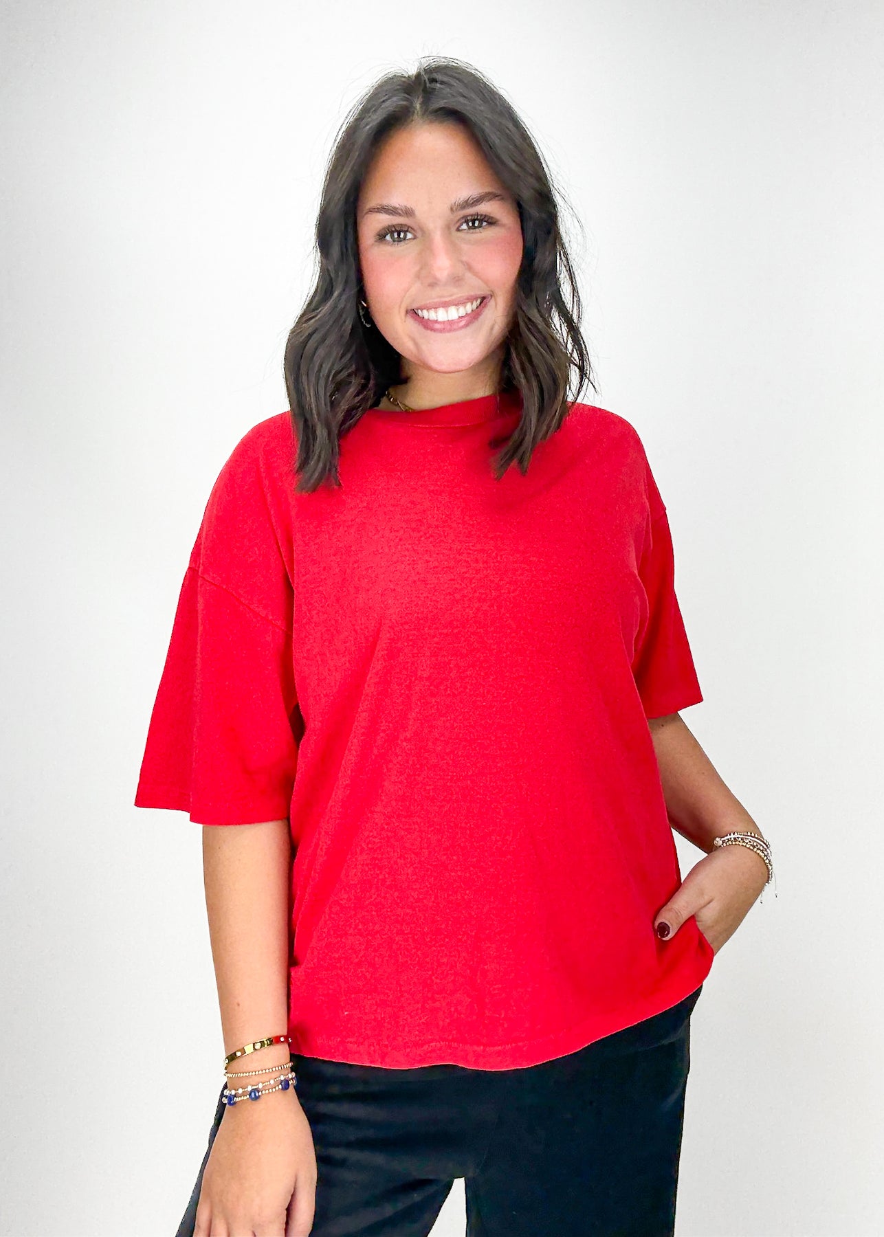 Just as cool as it is classic, this effortlessly essential tee is featured in a timeless short sleeve style and slouchy, slightly boxy silhouette with heavyweight fabrication for a super luxe style.