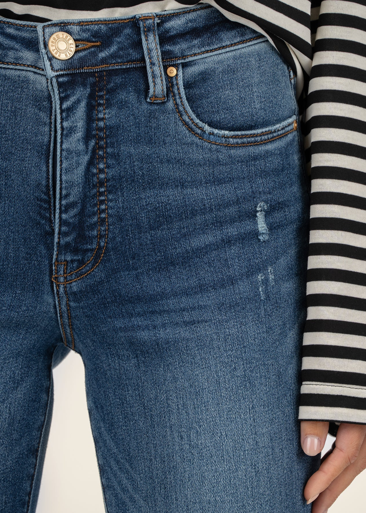 Step into effortless cool with these high-rise ankle straight jeans in a versatile medium wash. Featuring Fab Ab for a flattering fit, a trendy raw hem, and a touch of distressing, they’re made from stretchy material for comfortable all-day wear. Perfect for casual looks with an edge.