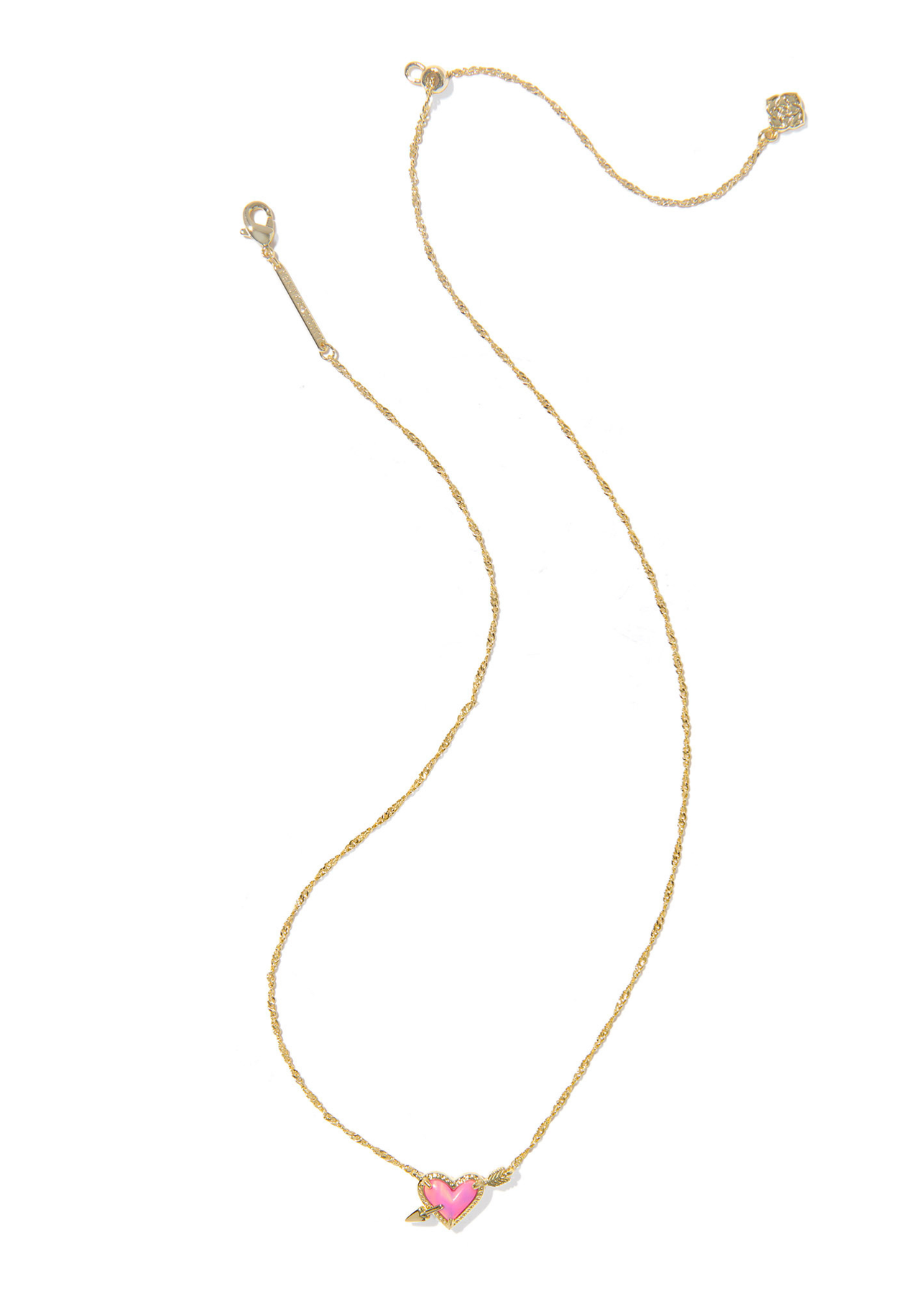 Our sweetest style gets a romantic makeover in the Ari Heart Arrow Gold Short Pendant Necklace. Set on a dainty chain, this darling pendant features an organic heart shape and dimensional arrow design, framed with our signature hoofprint detailing.