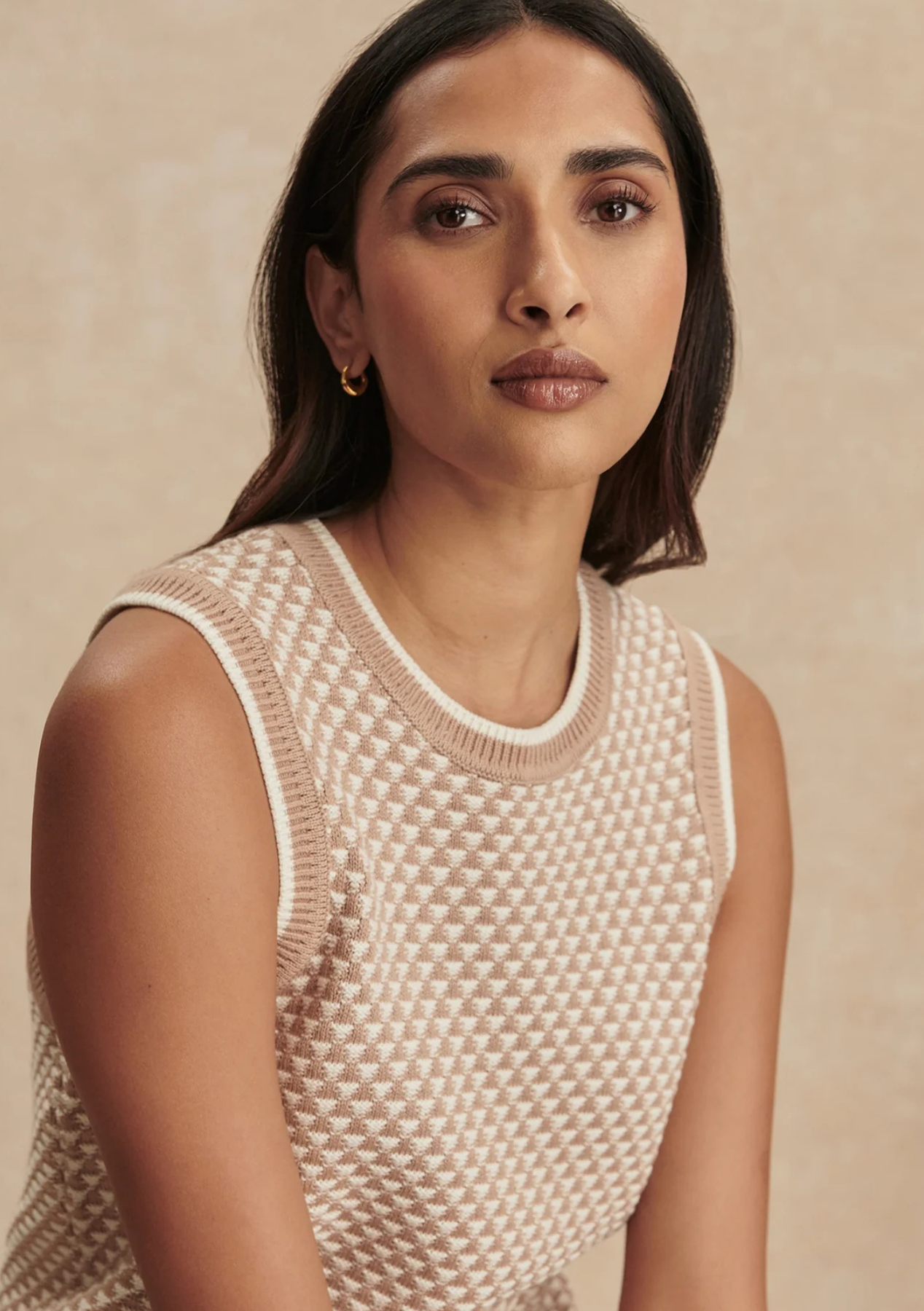 Say hello to Jenson – a knitted tank top that smartens up laid-back looks. The line and 2-color stitch have a bold effect. Style yours with dark denim for a low-key weekend look.