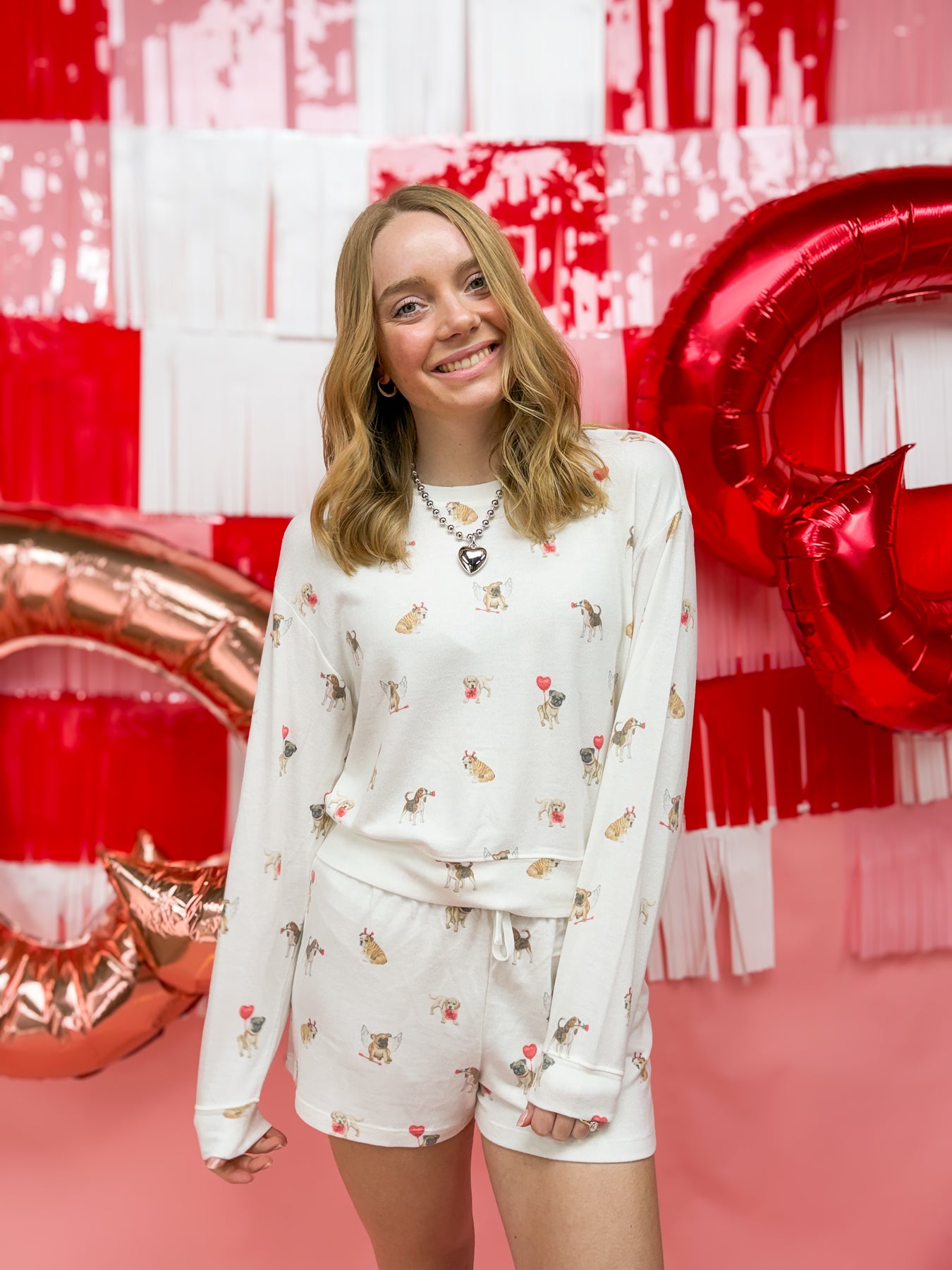 Your Valentine's look just got an upgrade! This incredibly soft pajama top features a puppy love graphic pattern for a fun look.