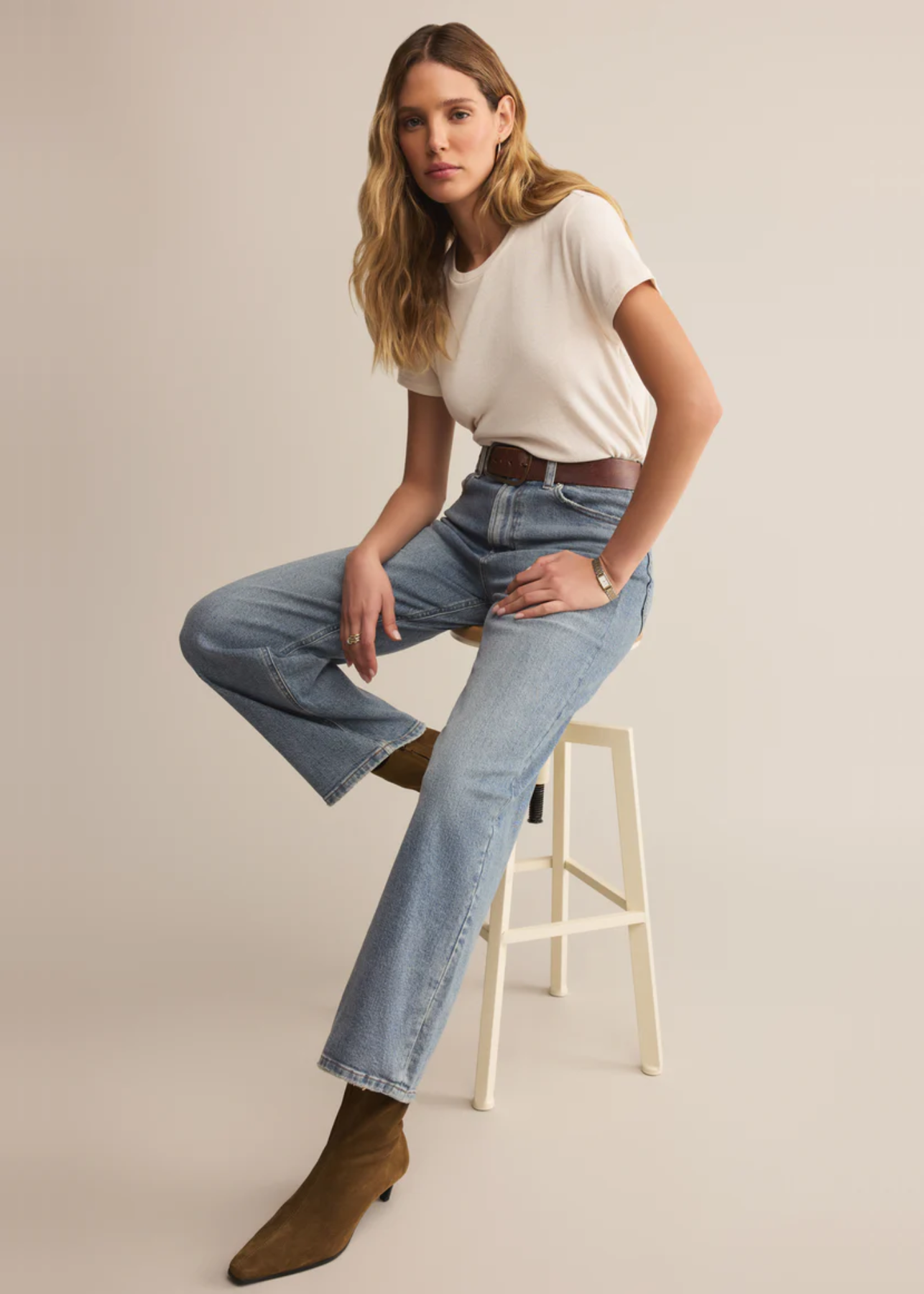 Soft and airy with just enough texture, this short sleeve crew neck tee is made from loose knit jersey for that effortlessly relaxed feel. The ladder stitch detail adds a touch of something special to your everyday rotation.