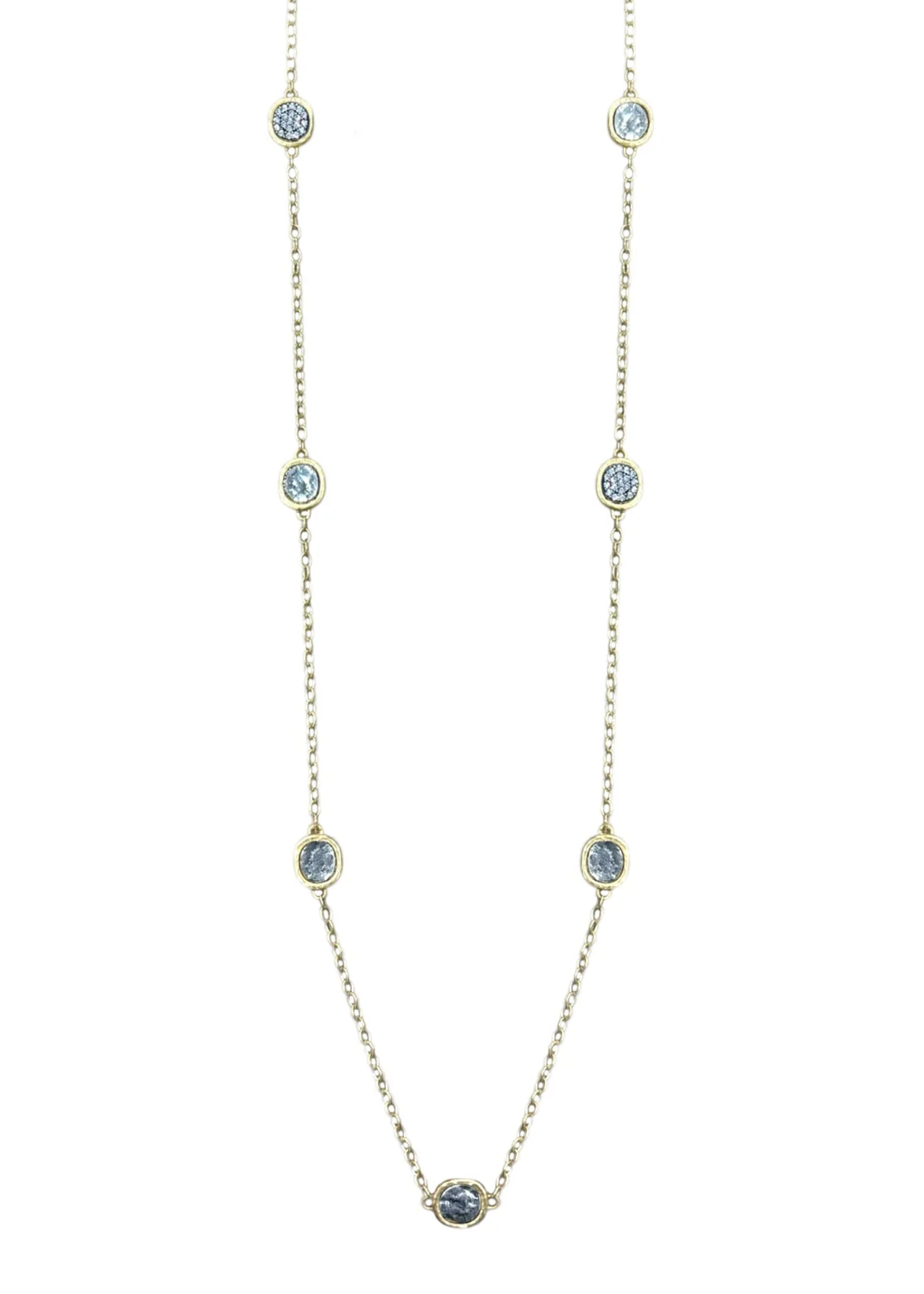 Necklace layering has never looked so good! This 41" dainty gold chain necklace is studded with silver coins that give it an edgy look.